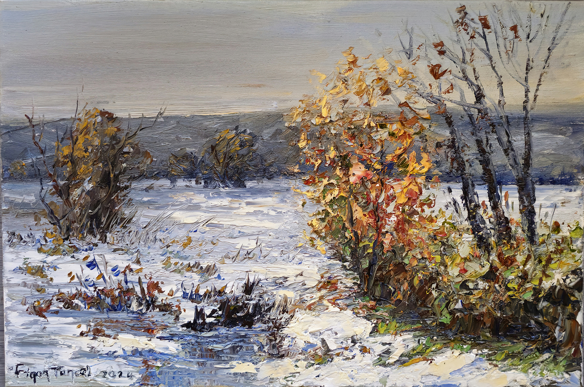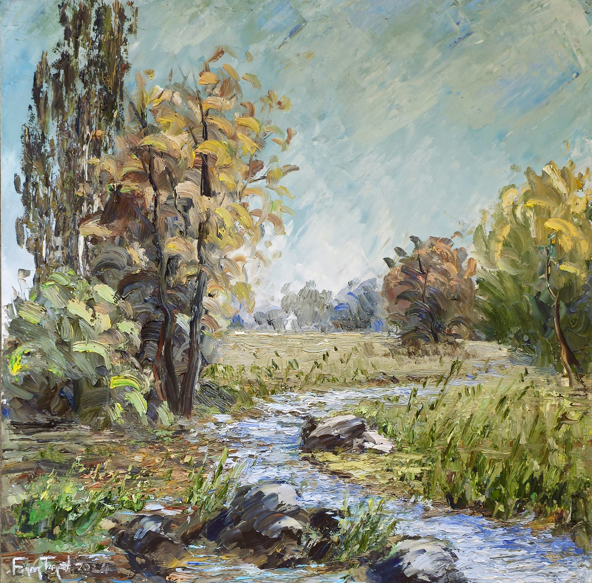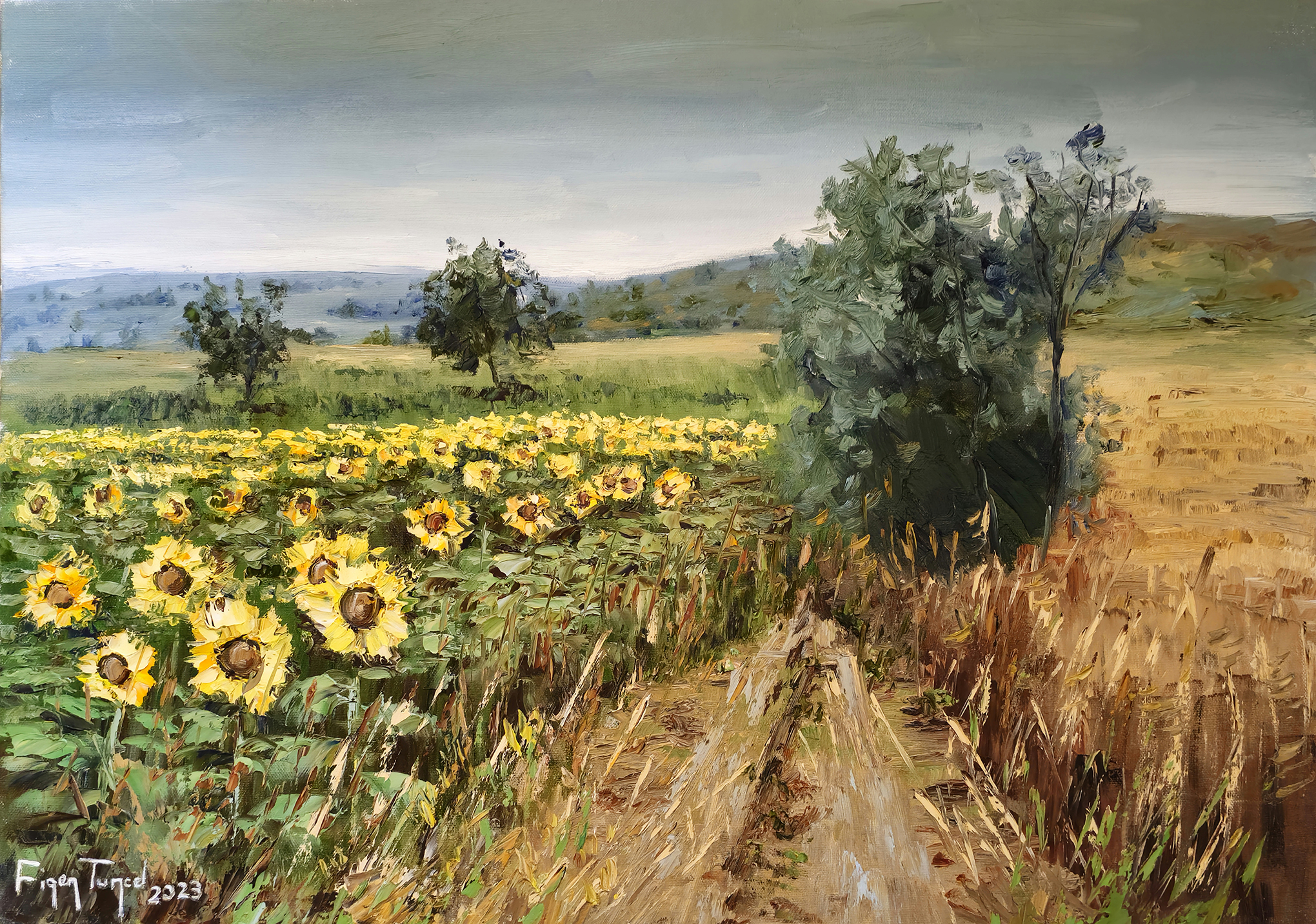 “Figen Tuncel’s paintings embody the subtleties of brush and spatula techniques. In her luminous landscapes, the artist masterfully blends warm and cool tones. The intensity of light she creates across the canvas is the most distinctive feature that distinguishes her works.”