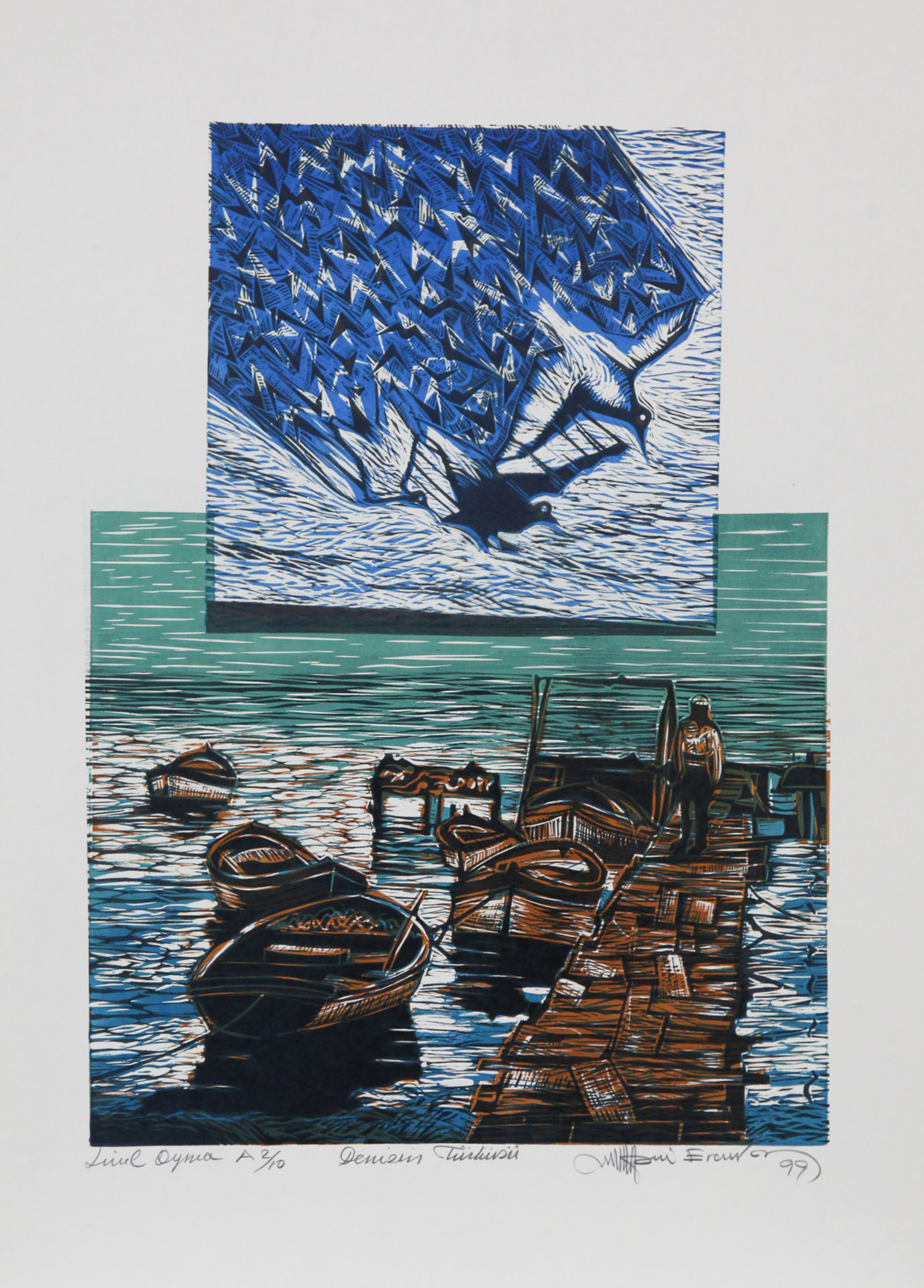 İlhami Ercivan's artistic production combines the disciplined structure of graphic arts education with the sensitivity of Anatolian themes. Known especially for his work in original printmaking (engraving, linoleum print, woodcut, etc.), the artist has developed a strong compositional understanding based on line. His works frequently address: