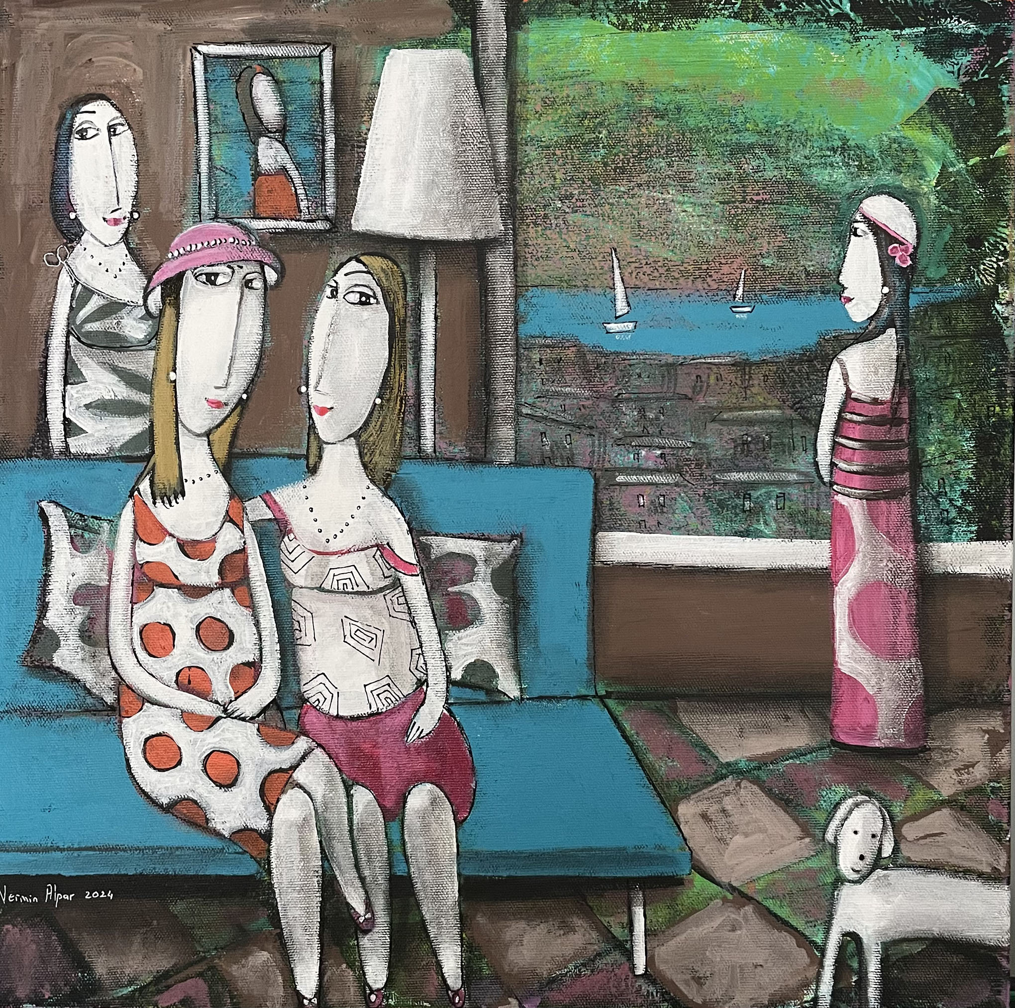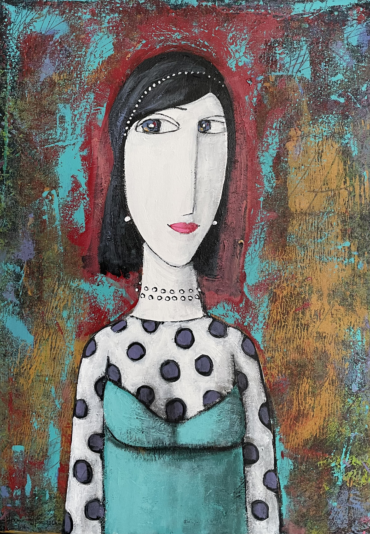 “Proud, intelligent and questioning female figures that contain sadness and melancholy under their smiles inspire me. My works are colorist, figurative and naive. Picasso, Modigliani and Klimt have been my sources of inspiration; especially Amedeo Modigliani. While my figurative works were initially detailed, I later made superficial abstractions and fragmentations. I turned from colored painting to a colorist and abstractionist understanding of color. While I was making landscapes in the years I first started painting, I later moved on to figures. Currently, I occasionally include abstract landscapes behind female figures.”