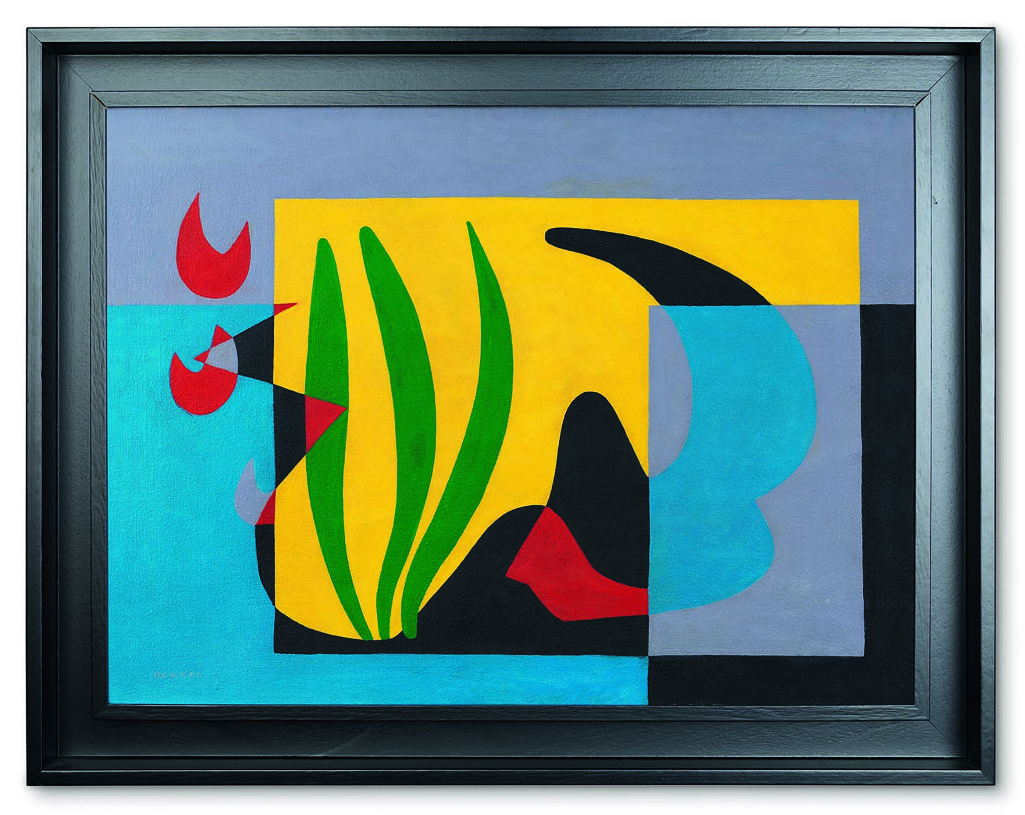 He gradually moved away from figurative painting towards abstract compositions. Geometric order, surface relationships, and rhythm became fundamental elements in his paintings.