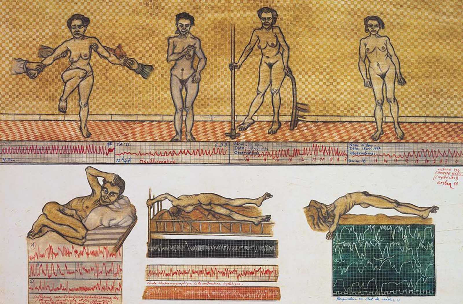 He held his first exhibition in 1955 at the Maya Art Gallery, managed by Adalet Cimcoz, under the title “Relationship, Behavior, Praise to Difficulties.” All the works in this exhibition, which received praise from critics such as Ferit Edgü and Sezer Tansuğ, were sold. Inspired by Jacques Mauduit’s work, “40,000 Years of Modern Art,” he began to apply a technique he would use in all his later works. He first used this technique, in which he produced his own paints using materials such as earth pigments, honey, egg white, soap, herbs, tea, tobacco, bone marrow, blood, and urine, in his series “Human Days.” Arslan completed his military service in Eleşkirt in 1957-58. In 1959, his second solo exhibition in Istanbul, “Phallisme,” received praise from figures such as Adnan Benk and Mazhar İpşiroğlu. André Breton, who saw Arslan’s paintings through Edouard Roditi, invited the artist to the International Surrealism Exhibition to be held in Paris at the end of 1959. However, Arslan could not participate in the exhibition. In 1961, Arslan went to Paris to exhibit 15 of his paintings in a gallery and began to live there. He participated in various exhibitions. During his solo exhibition Homunculus-cucus-palus, planus-phallus-micrococcus in 1962, Jean Dubuffet, who saw Arslan’s works, began to correspond with the artist and bought one of his paintings. During this period, Arslan created the term “arture” by combining the French words “art” and “peinture” to name his paintings, and he identified his works with this name from then on. In 1965, he spent 10 months in Berlin. He met his wife Lidy, and their first child, Artur, was born.